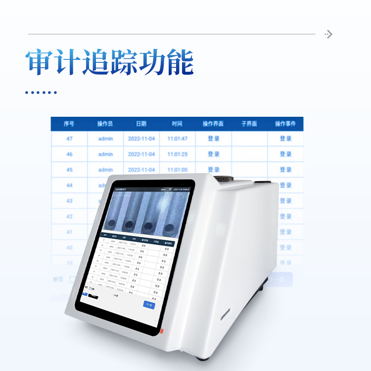 完整版审计追踪和用户分级权限管理, 超级管理员可以修改所有人密码和用户名并可追溯,超级管理员可以修改所有操作员权限,用户帐号有禁用和启用两个功能,人员更替暂时不用账户时可以锁定,使用时可以解封,U盘导出PDF和Excel数据防篡改功能。比较完善的审计追踪,登录、退出、修改数据、时间、操作步骤、导出U盘等应有相关记录。